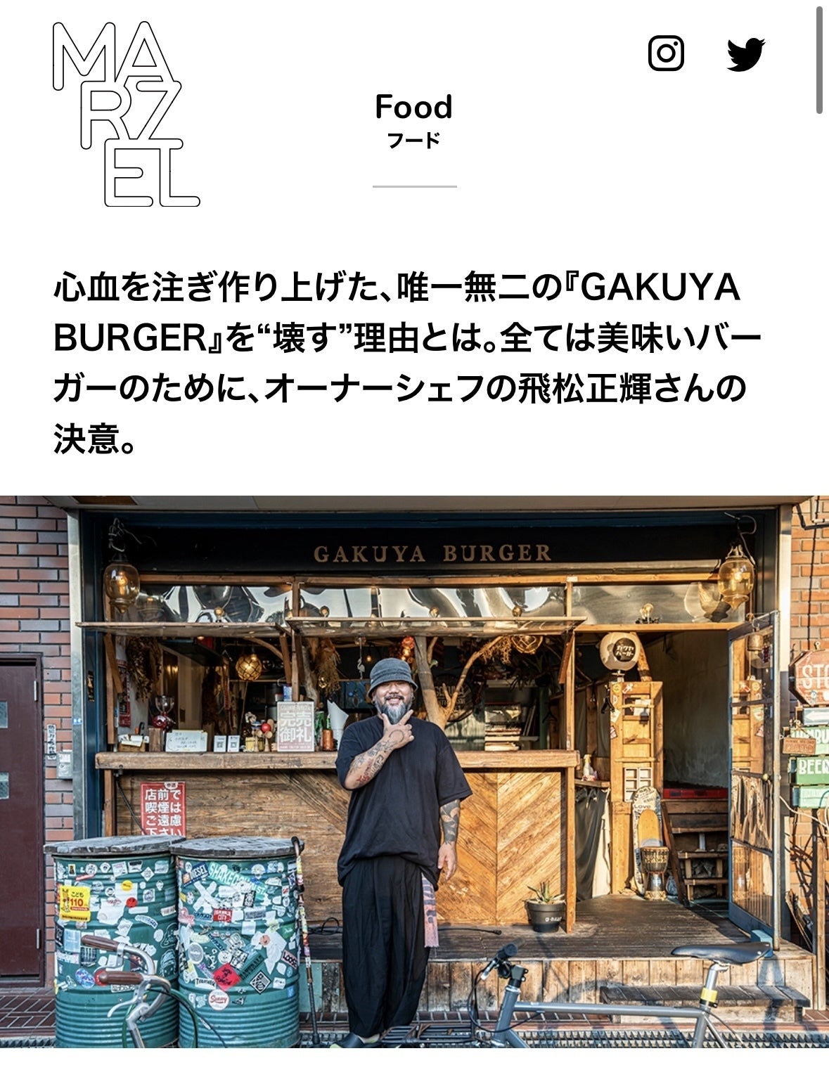 MARZEL【ガクヤバーガー飛松正輝:心血を注ぎ作り上げた、唯一無二の『GAKUYA BURGER』を“壊す”理由とは。全ては美味いバーガーのために、オーナーシェフの飛松正輝さんの決意。】
