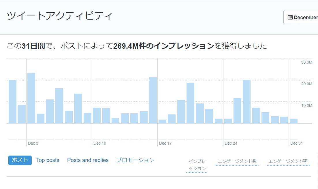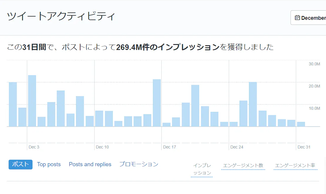 いつの間にかに貿易業の傍らで、現在でフォロワー10万人を超え、インプレッション数は月によっては2憶を超えることもあります。