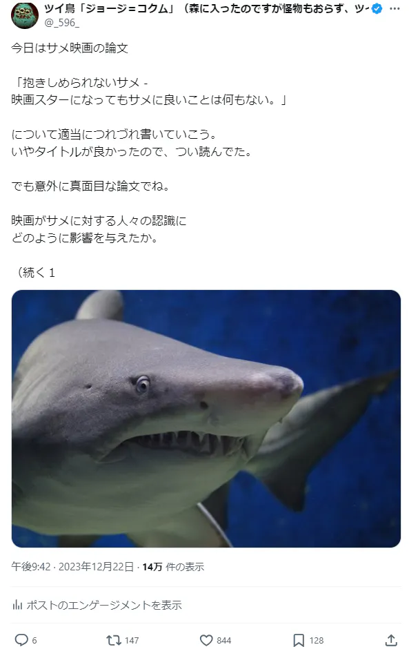 2、こちらはサメ映画とサメの影響の論文。