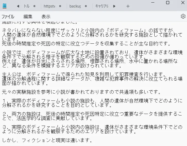1,こちらはミステリー小説によくある、死体トリックの話
