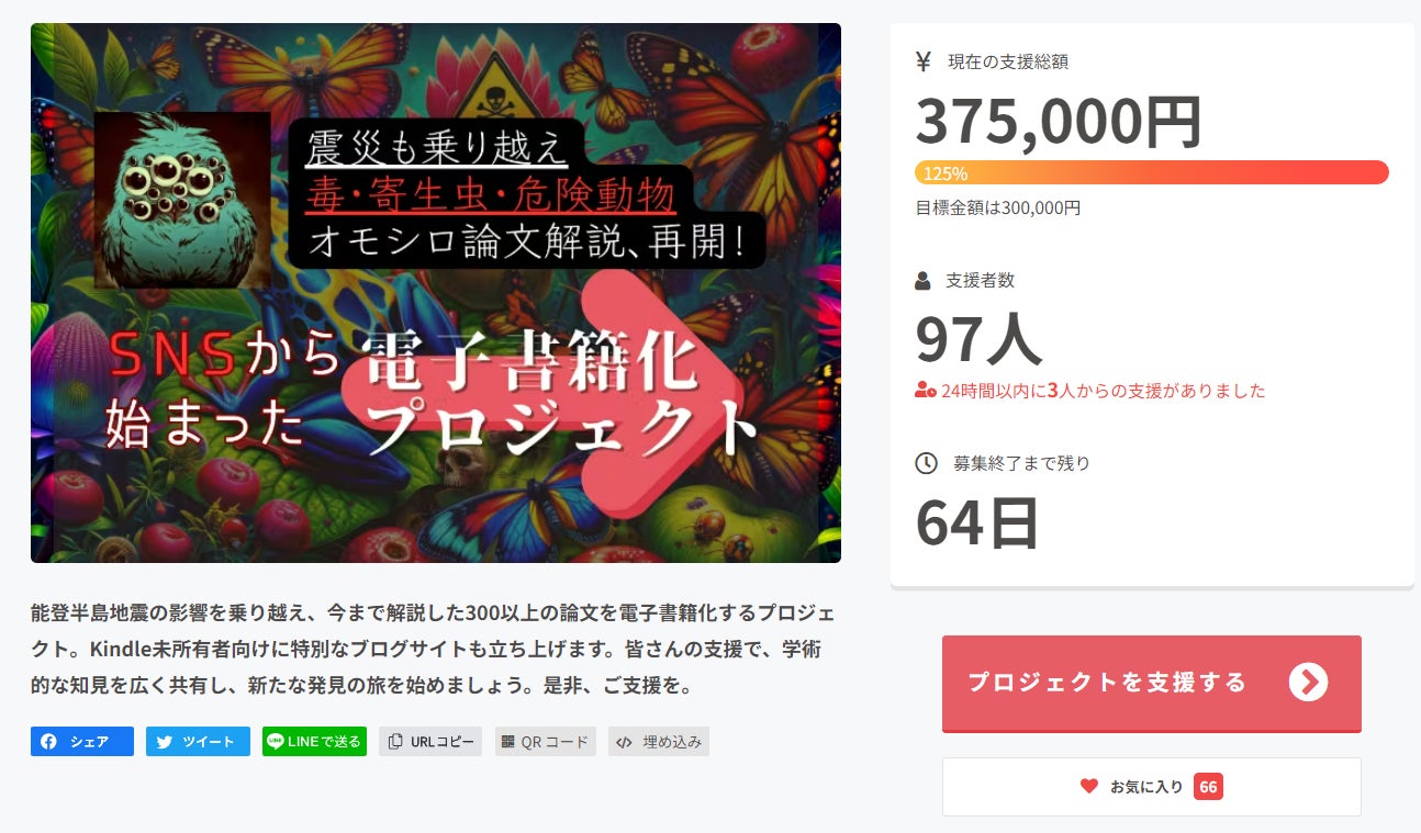 このプロジェクトは、2024/03/11に募集を開始し、 143人の支援により 551,000円の資金を集め、 2024/05/18に募集を終了しました