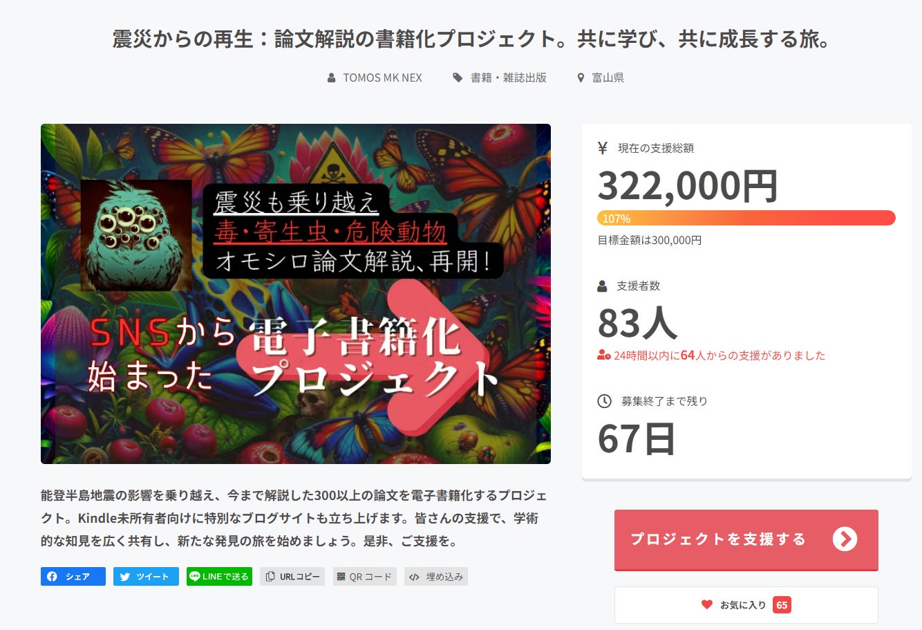 著作者のコクムです。多くのご支援ありがとうございます。プロジェクト開始から1日経過いたしましたが無事に達成率100%を超すことが出来ました!ありがとうございます。始まったばかりのプロジェクトですが、さらなる支援をいただけるよう励みたいと思います。今後ともよろしくお願いいたします。