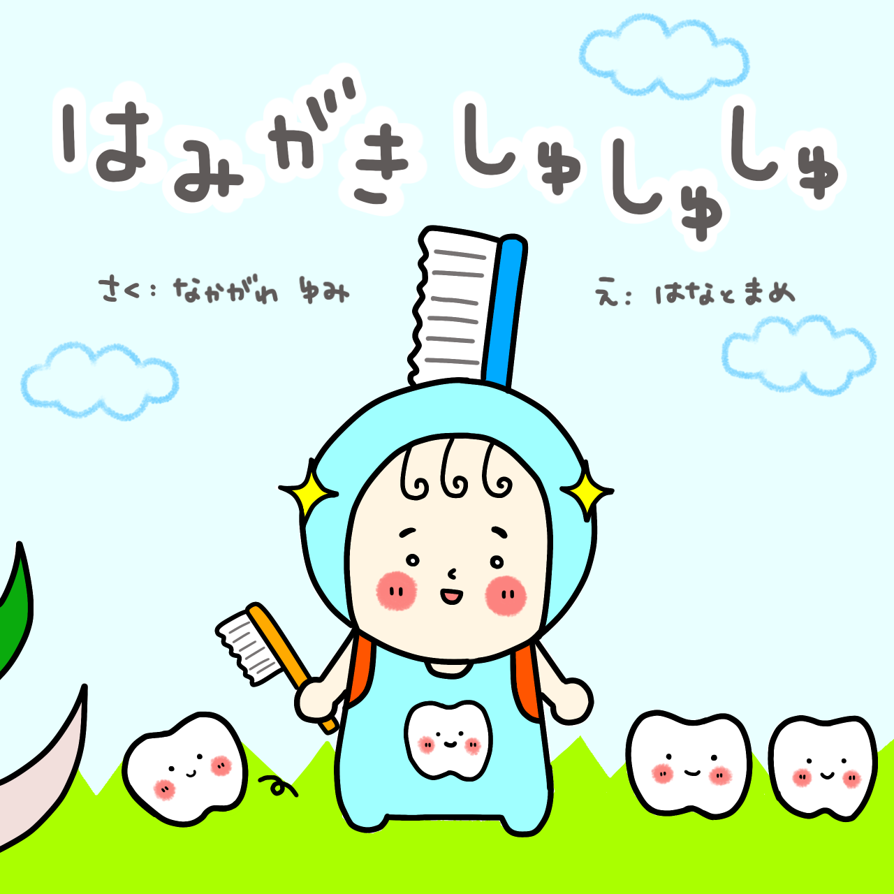 こんにちは。なかがわゆみです。『はみがきしゅしゅしゅ』には、かばさんが出てきます。かばさんの大きな口を登場させるアイデアは、さっちゃんから。さっちゃんは、長男の時のママ友で、今はもう連絡が途絶えています。元気かなー。長男が小さいころ、食べこぼしがひどかったので家で二人でお昼ご飯の時間を過ごすのが苦痛でした。それで、公園で仲良くなったママとよくお昼を一緒に食べてました。その場で突然誘うので、それぞれのお昼を持ち寄って…。子どもは飽きたりお腹がふくれてくると、「あーん」しても口をあけてくれなくなります。うちの子に限らず、さっちゃんのお子ちゃんもスプーンが入らない小さな口を開けることがありました。そんな時さっちゃんが「ちいさなお口やな~、リスさんのお口やなそれは…。かばさんのお口はどんなかな~?」というと、「あ~」と大きな口が開くのです!!さっちゃん、天才!!!だからこの歌ができたのは、さっちゃんのおかげでもあるのです。感謝。さっちゃん、ありがとう。またどこかで再会できたら嬉しいな。
