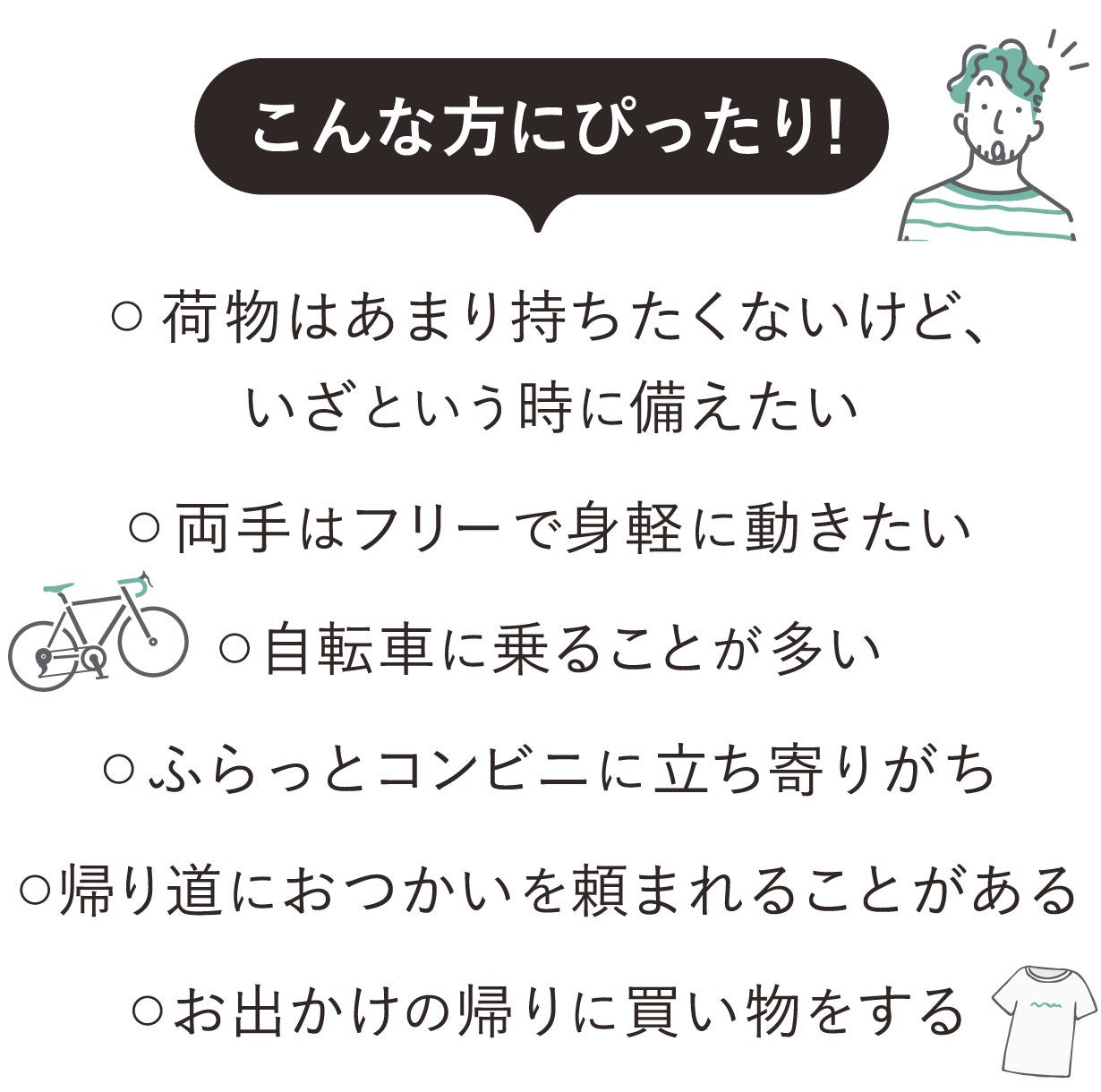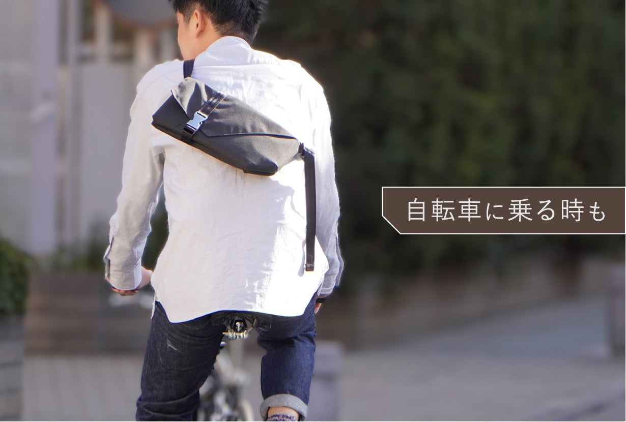 スリムで軽いので、ストラップを調整して体にピッタリ密着させれば、自転車に乗る時にも邪魔になりません。