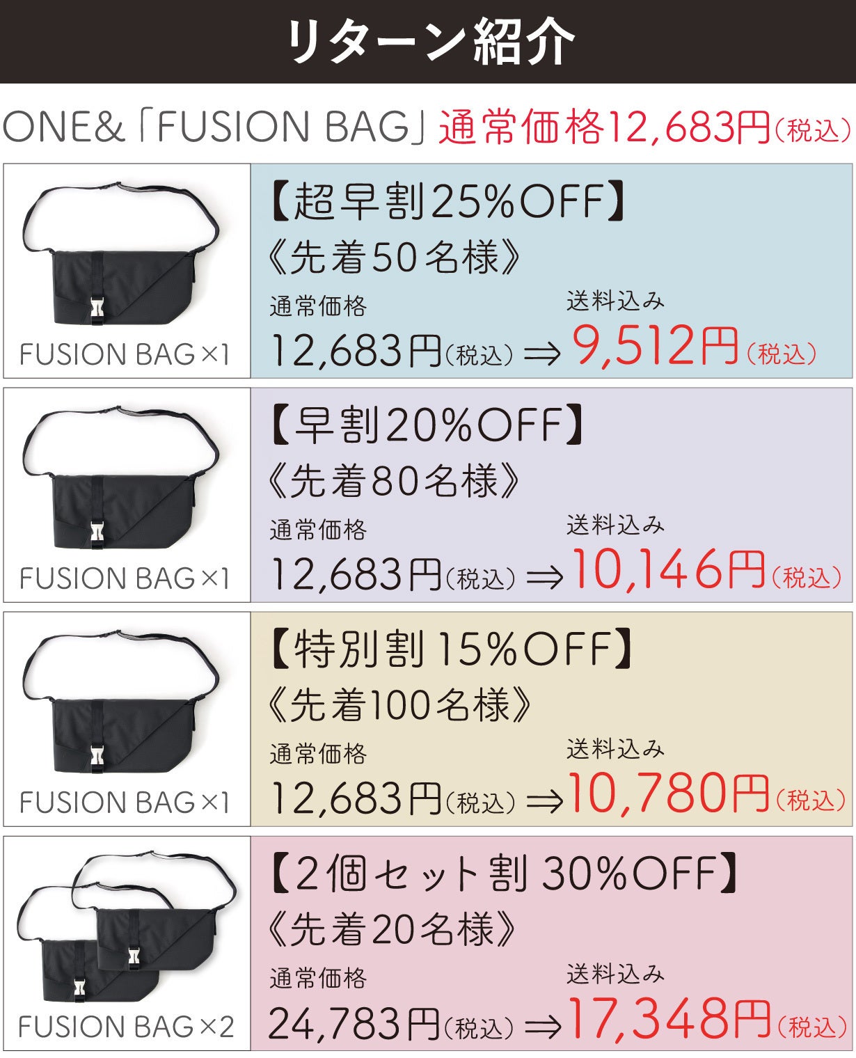 2024/09/02 12:23FUSION BAGをご支援いただいた皆様へ大変長らくお待たせいたしました。倉庫での検品作業が完了し、9月4日(水)に配送の準備が整います。今週中を目途に皆さまのお手元に商品をお届けいたします。商品のお届けまで今しばらくお待ちくださいますよう、よろしくお願いいたします。 もっと見る【御礼】プロジェクト終了と配送スケジュールのご案内