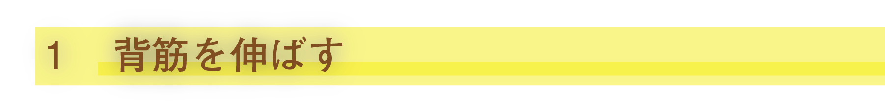 頭の頂点からお尻まで1本の棒が通っているような意識をし、脊椎を伸ばしましょう。