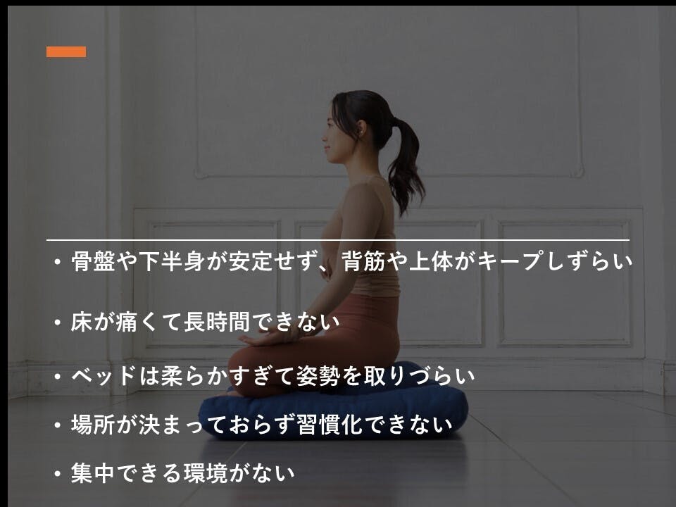 情報過多の時代だからこそ、情報から離れてデジタルデトックスすることで自分と向き合う時間を大切にしたいと考えています。しかし、これらの利点をうまく伝えるブランドがまだ存在しないため、私たちは丁寧にコミュニケーションを図り、瞑想を毎日の生活に取り入れるためのデザイン性と素材にこだわったクッションを提供したいと考えています。
