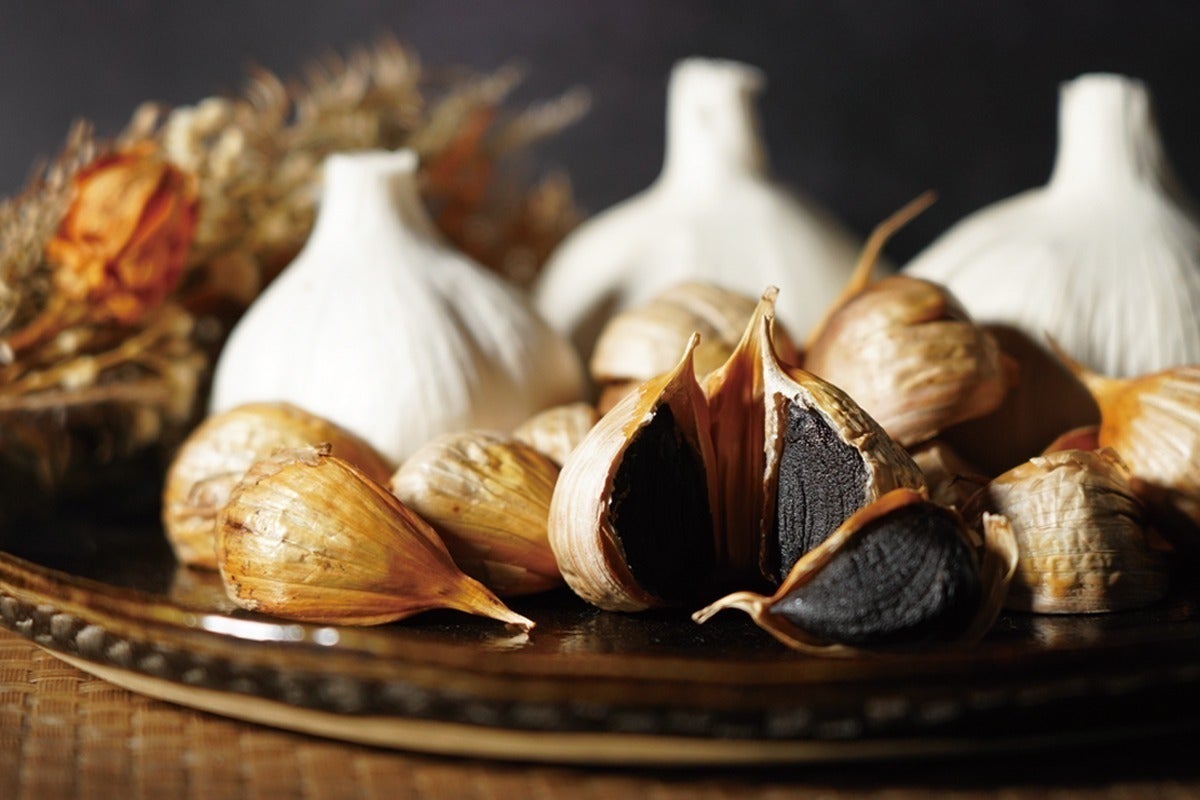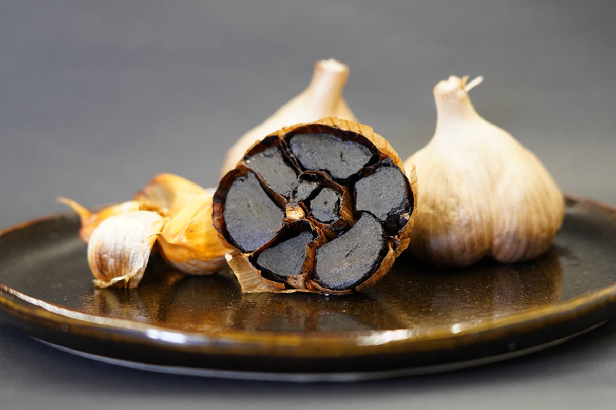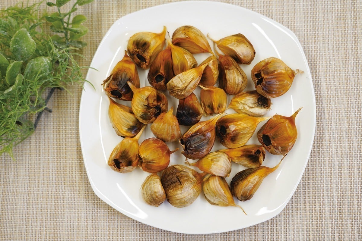 黒にんにくは、外部の菌などの助けを借りず、にんにく自体がもつ力で発酵させます。湿度と温度管理を徹底し、約1ヶ月の長い時間をかけてゆっくりと熟成させることで生のにんにくの強いにおいがなく、果物のような甘みと、酸味が引きたった真っ黒な黒にんにくに仕上がります。またポリフェノールやS-アリルシステイン等の有用成分が何倍もアップします。黒にんにくは、にんにく本来のパワーをより高めた優秀な発酵食品なのです。