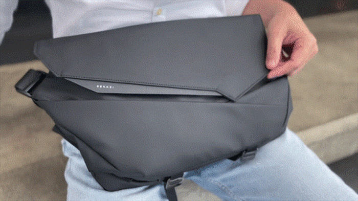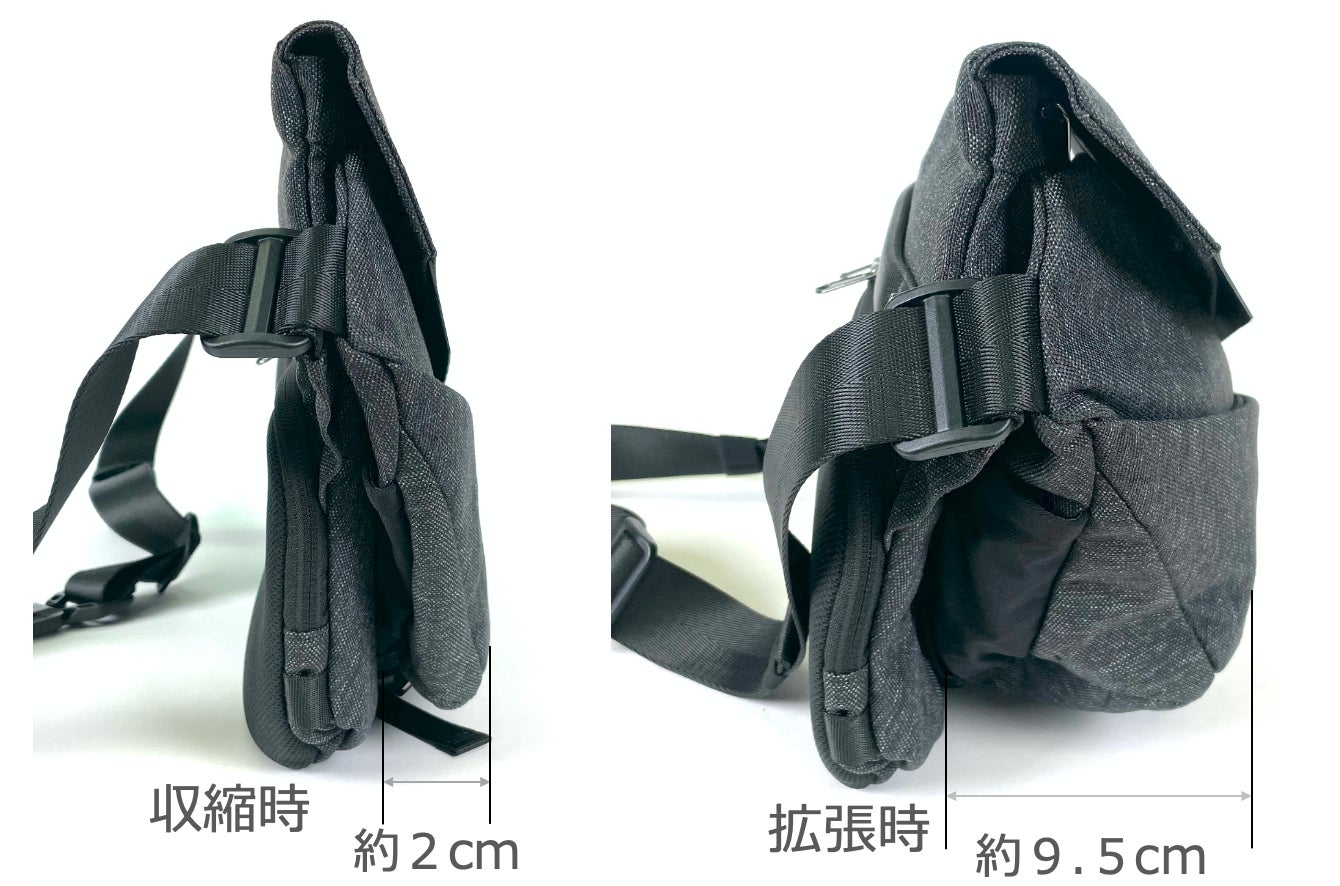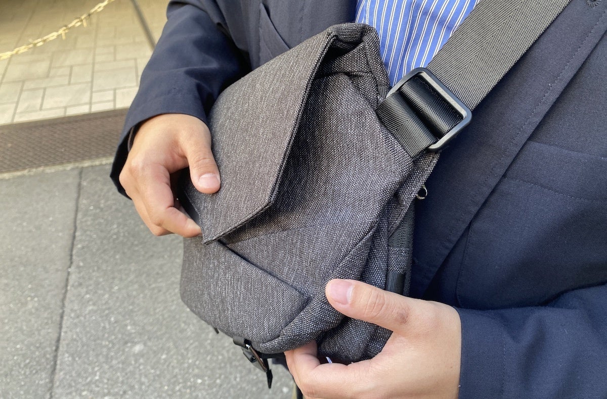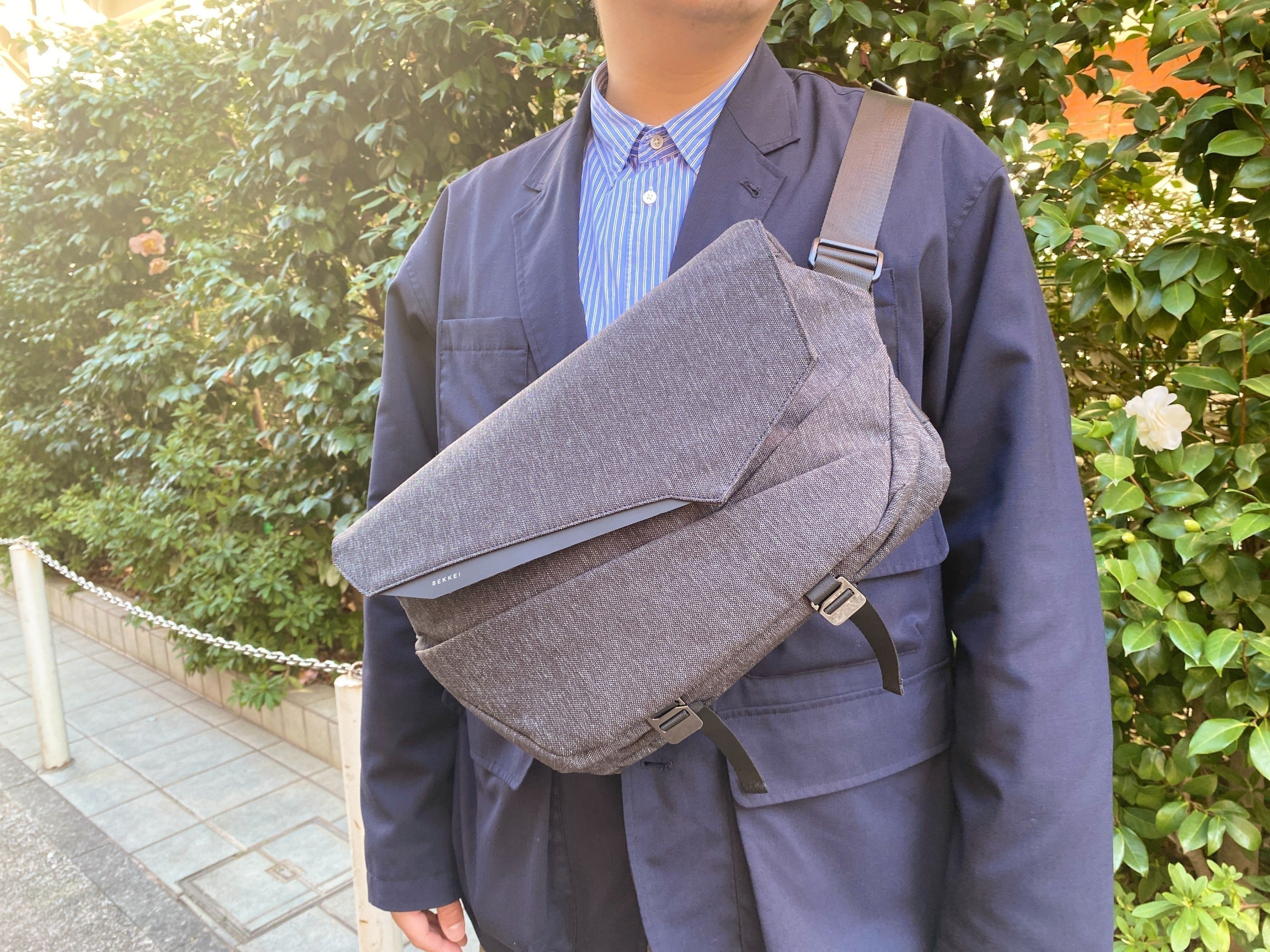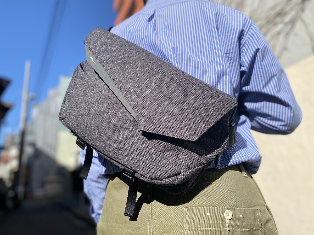 13インチノートPCや一眼カメラなど、サイズ的に少々かさばるアイテムも運べる、容量可変式の「SEKKEI MX-sling」の新色としてダークグレーが登場!