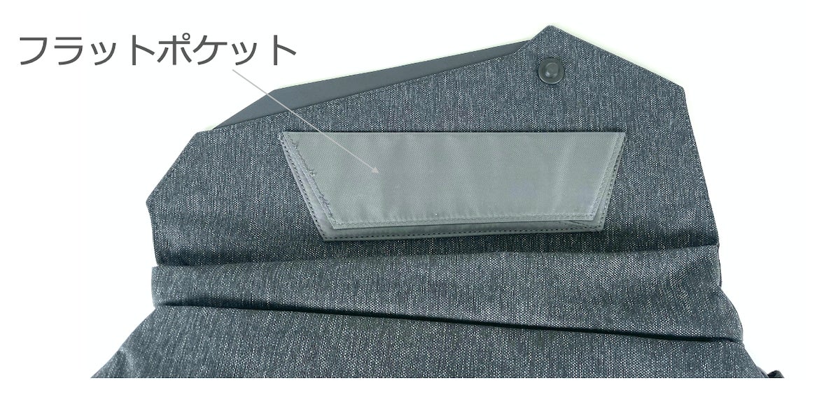 フラップを開けると現れるMacBook Air、LAPTOP、タブレット、ノートなどを収納するコンパートメントです。ファスナーはついていないので、アイテムの出し入れがスムーズに出来ます。