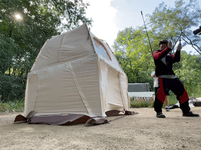 *ペグが一つも刺さっていない自立状態でドアを全部閉めたまま、どれくらいの風が吹けばテントに変化が起きるのかのテスト