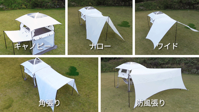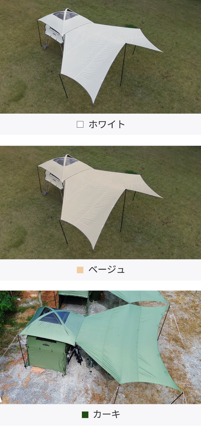 以前まではオプションとして提供したタープを、今度のプロジェクトでは、リニュアルされたバージョンを基本構成(フルパッケージ)として追加致しました。