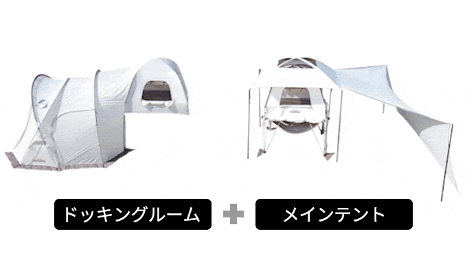 ドッキングルームで屋外に自分だけのリビングを作ることができます。今度のプロジェクトで皆様に新しいキャンプ体験をプレゼントするため特別製作致しました。