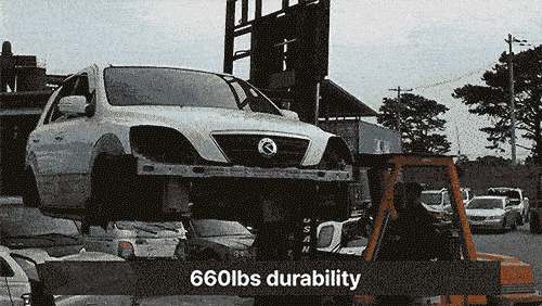 自動車の660lbの重さ(約300kg)にも耐えることができます。4人家族が上がっても大丈夫です!