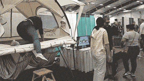 私たちはできるだけ簡単でありながらも非常に丈夫な2階建てフレームを作ることを目標に開発を始めました。フレームの天板は硬い金属板や、木板ではなく、工事現場から落下する物を掴んでくれるネットを使い、まるでトランポリンのような感じの天板構造を開発しました。また、自分の体に合わせてテンションを調節できる「ザ·ドゥカン雲マット」を開発しました。