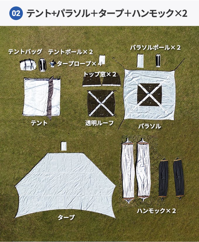 ザ·ドゥカン2はどこで、誰と使うかといった使用環境やキャンプの人数などに合わせて、ザ·ドゥカン2をカスタマイズできます。
