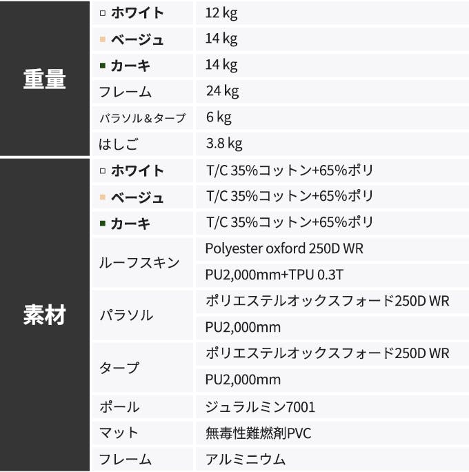 更に、カーキ色のバージョンとベージュ色のバージョンはパラソルとタープの内部が遮光コーティングになる予定であり、より大き目のタープを提供するので、より快適で解放感あるアウトドア体験ができます。