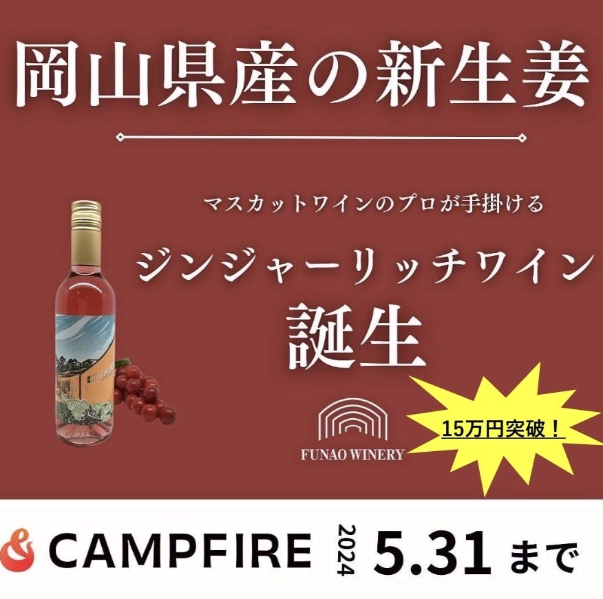 クラウドファンディングも折り返しの時期になりました!そしてこのタイミングで、目標達成率50%、支援総額15万円に到達しました‼皆様本当にありがとうございます。毎日ドキドキしながら過ごしていますが、1人でも多くの方にふなおワイナリーのこと、商品の良さ等知っていただければと思います。クラウドファンディングは5/31まで実施しています!引き続き皆様ご支援、宣伝等よろしくお願いいたします!