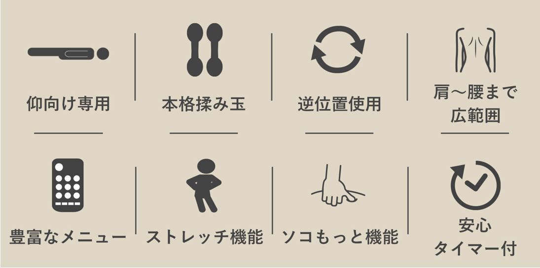 仰向け時に背中をマッサージすることは、たとえプロでも人には絶対に真似できません。
