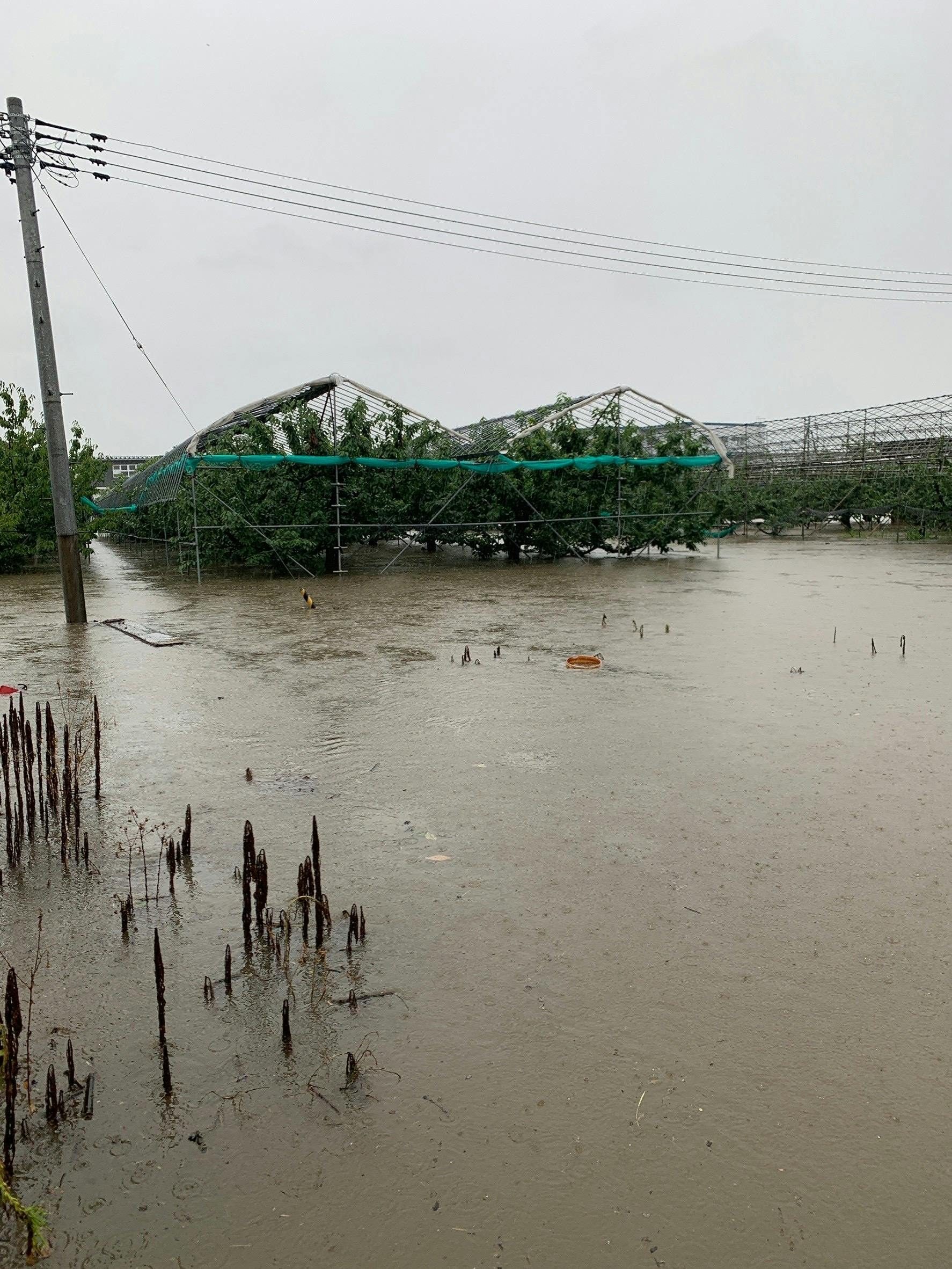 異常気象による集中豪雨の被害で圃場が完全に水没