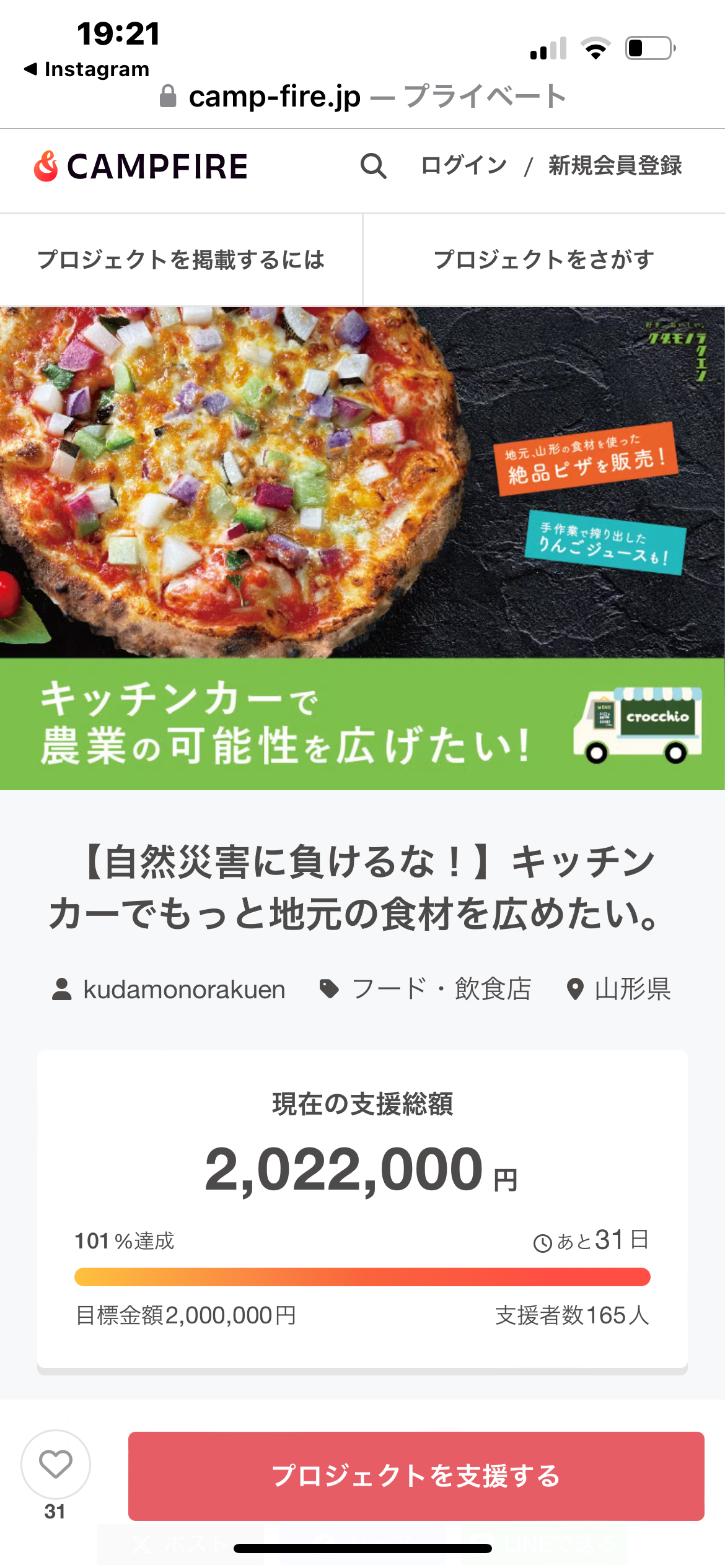 2024/11/14 19:41皆様のおかげさまをもちまして本日目標にしていた200万をクリアーいたしました‼こんなに沢山のご支援をいただき誠にありがとうございました!このお気持ち大切に活用させていただきます!目標金額に達したのでここで終了する事も考えましたが残りの日数もまだ1か月以上残っておりキッチンカーの総工費が700万円近くに上る事を考えるとまだまだ資金が不足しております!!図々しいお願いかもしれませんがこのままこのプロジェクトを継続させ多くの方に我々のミッションを知って頂き、農業の可能性をさらに広げていければと思います!!どこまで伸ばせるかは未知数ですが何卒この先もご支援頂ければ嬉しく思います!必ず農業で恩返しする事をお約束します!!あと残り約1カ月!!よろしくお願いいたします!!!! もっと見る