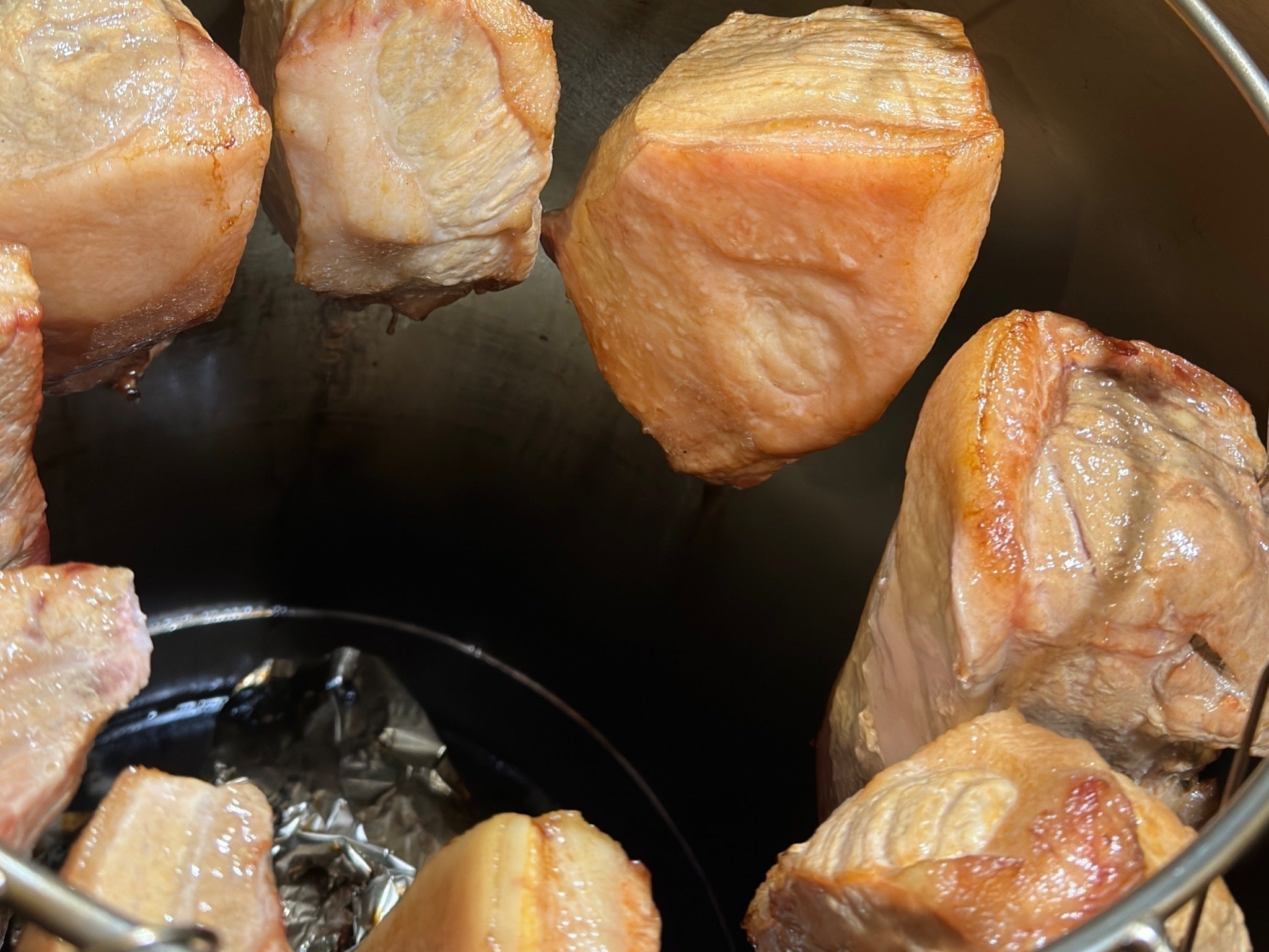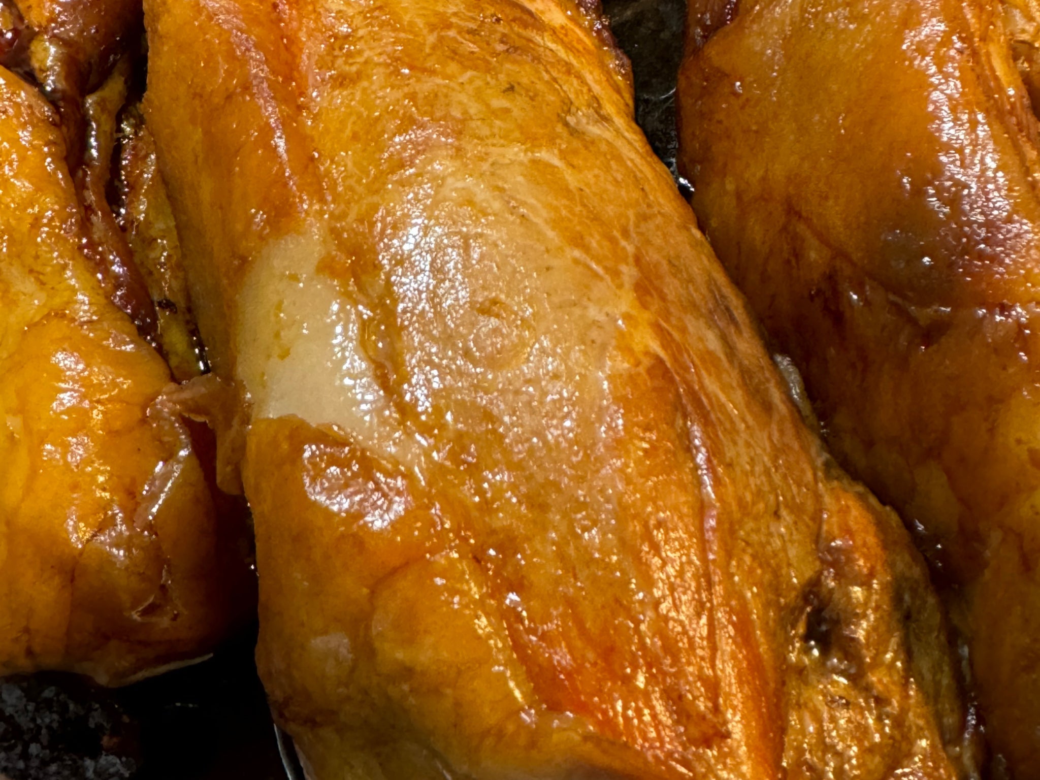 特注の釜焼き器で作る国産豚もも肉の吊るし焼きチャーシューは薫香が口の中に広がり、肉汁があふれてきます。