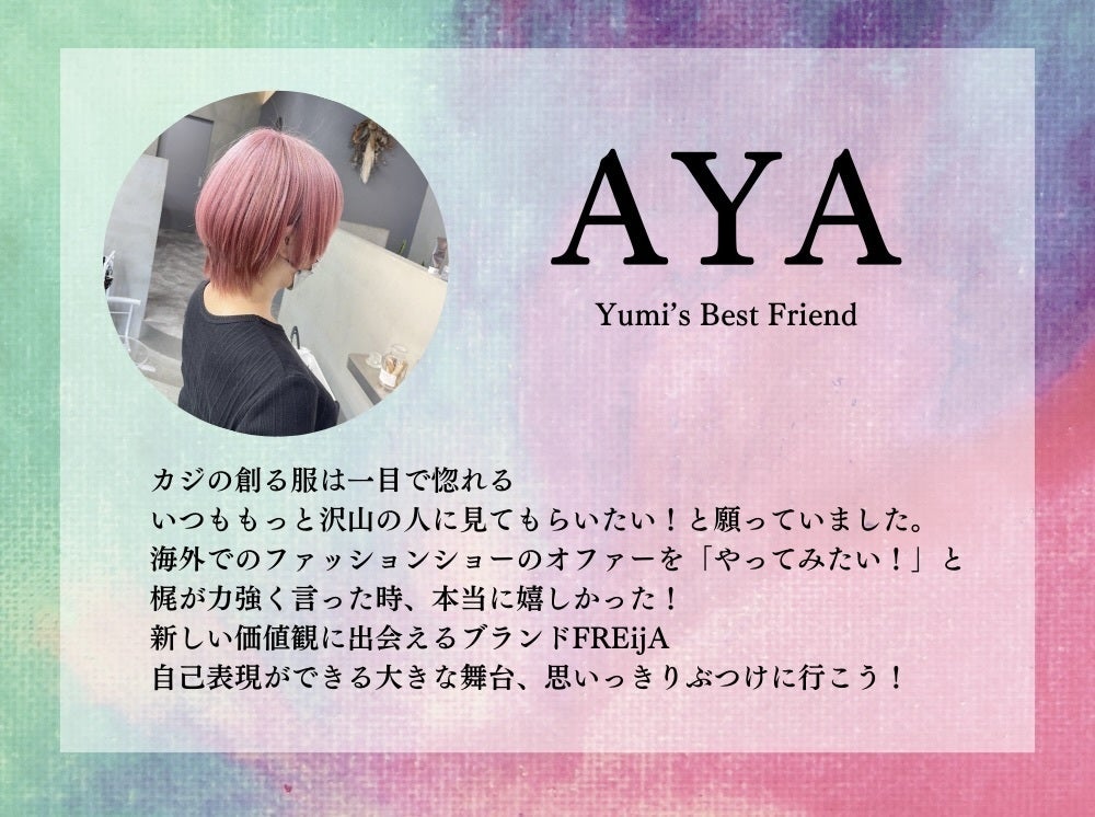 この大きな決断は、その他人本位になっていた私の創作活動にピリオドをうつという決心の表れであり、自身のブランドFREijAの活動を多くの人に知ってもらえる大きなキッカケ作りの第一歩になるという確信があります。