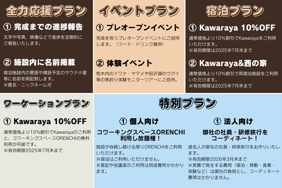 より多くの方々にご支援いただけるよう、様々なプランを準備しました!
