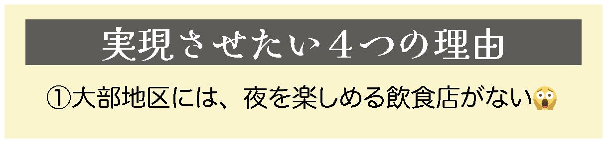 すなわち地元の⽅々は夜にふらっと立ち寄って美味しいものを食べながら交流できる場所が無いことを意味します。