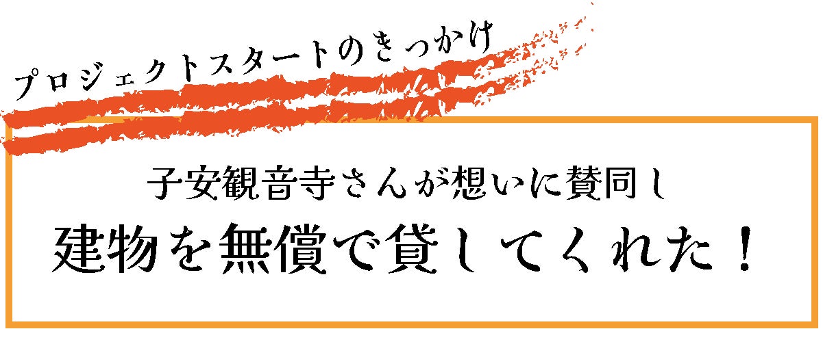 ある日、大部のお寺、小豆島子安観音寺(安産・子授・良縁のお寺)に、娘の日々の健康のお祈りと感謝を込めてお務めに行った際に住職さんにこの話をしてみたら、想いに賛同してくださり、所有の建物を無償で貸してくださることになったのです。