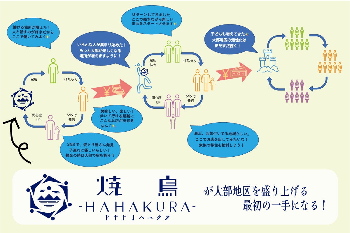 →居酒屋HAHAKURAで雇⽤が⽣まれる。