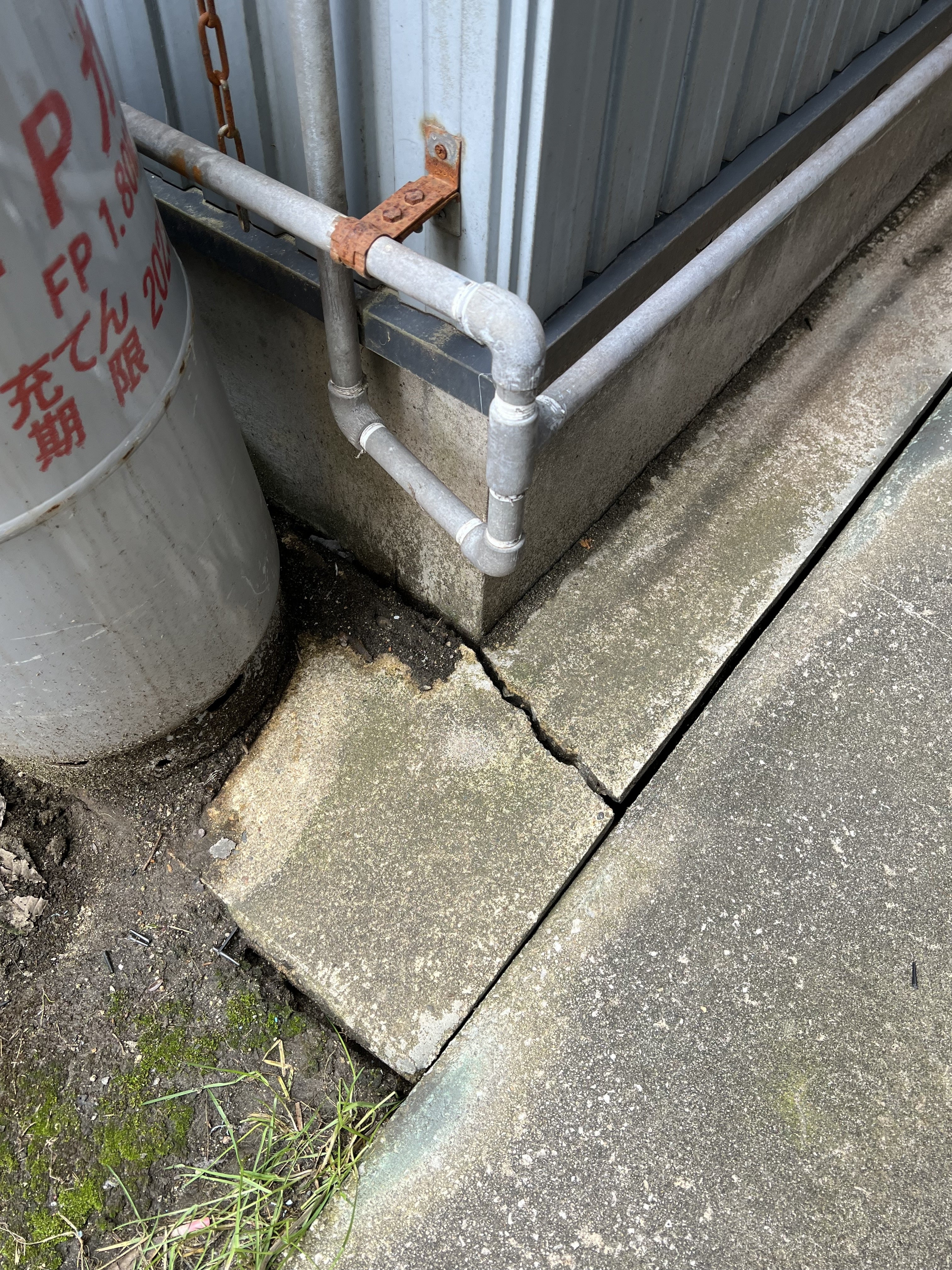 傾きによってトタンが外れている