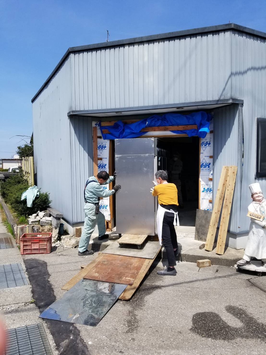 4月8日。店から機械を出す作業をお手伝いしました。