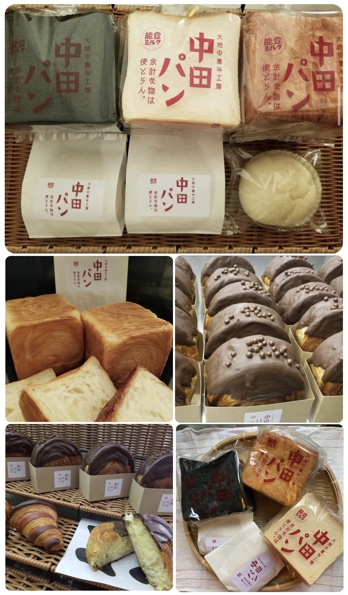 『中田パン』は昭和63年に開業し、能登七尾でパンを作り続けています。地元の食材を取り入れてパンを製造しています。『能登ミルク食パン』は能登ミルク100%使用で焼いております。また、地元をメインにスーパ一どんたく、ネット販売、ふるさと納税返礼品など、皆様から愛されるパン屋を目指し日々努力しています。