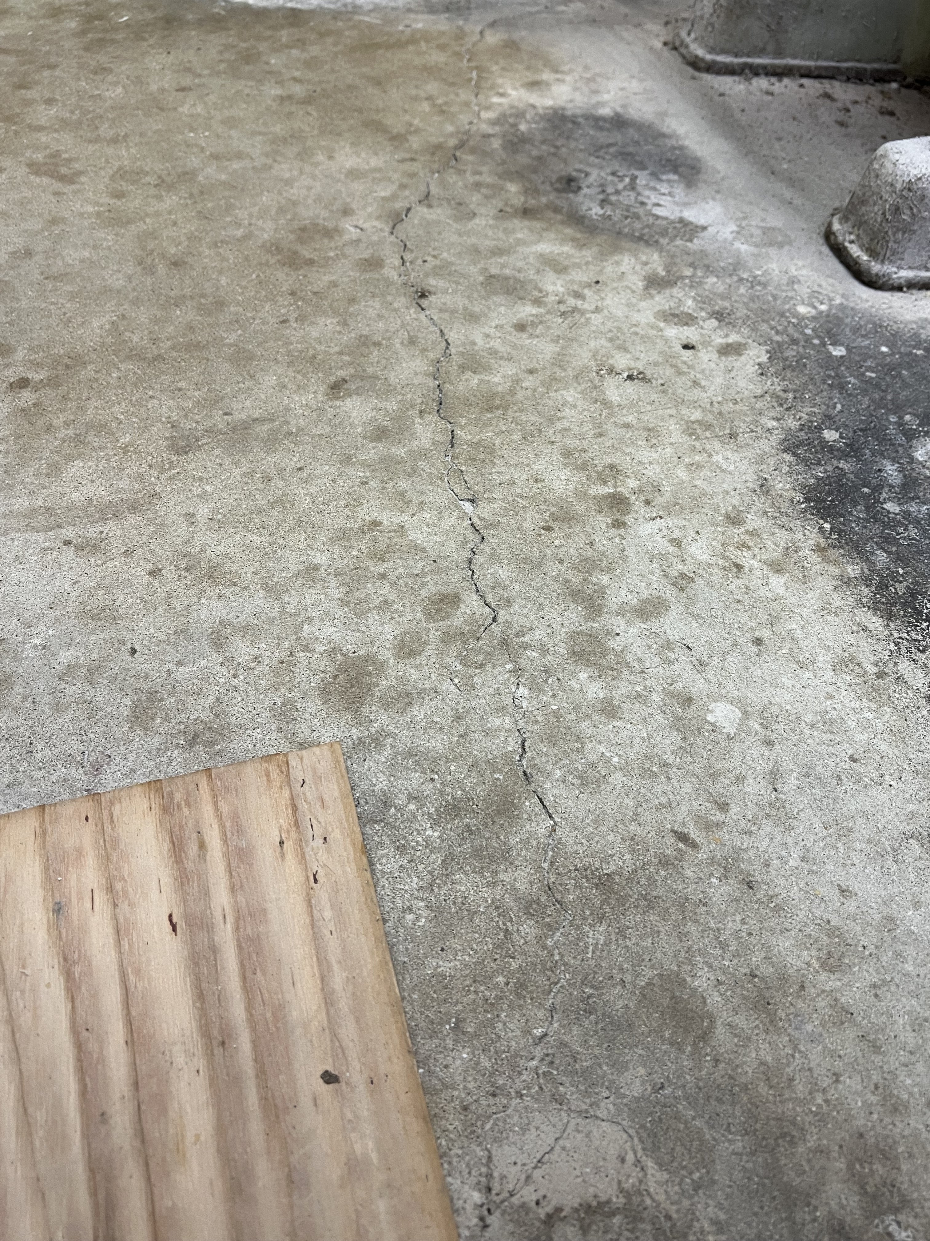 能登半島地震の影響で、パン工場が地盤沈下し、最大22㎝傾いています。入口のドアも開かない状態です。