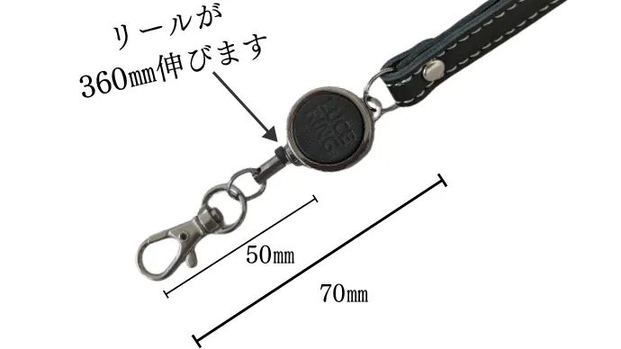 ヘアアレンジを崩さず着脱できるのも嬉しいポイントです。リール付きで最大360㎜伸びるので、メモする時やICカードをタッチする時などに便利です。
