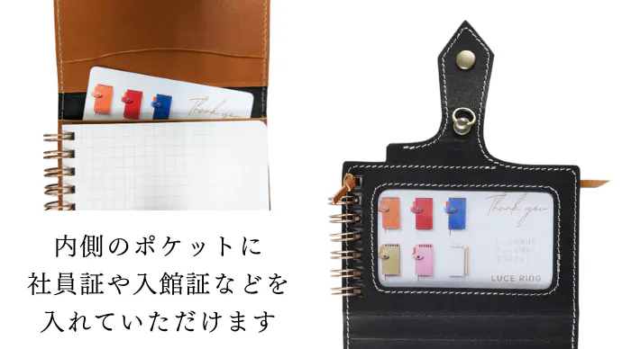 2023年1月にLUCE RINGをリリースしてから、SNSや展示会で様々な方のご意見を頂戴し、より使いやすく、理想に限りなく近いリングメモ付のIDケースを開発致しました。