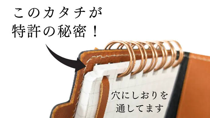 メモ用紙の角を落として切込みが入っています。リングメモだからこそできた、超便利なしおり機能を使ってみてください!しおりが不要な場合は、外して使っていただけます。