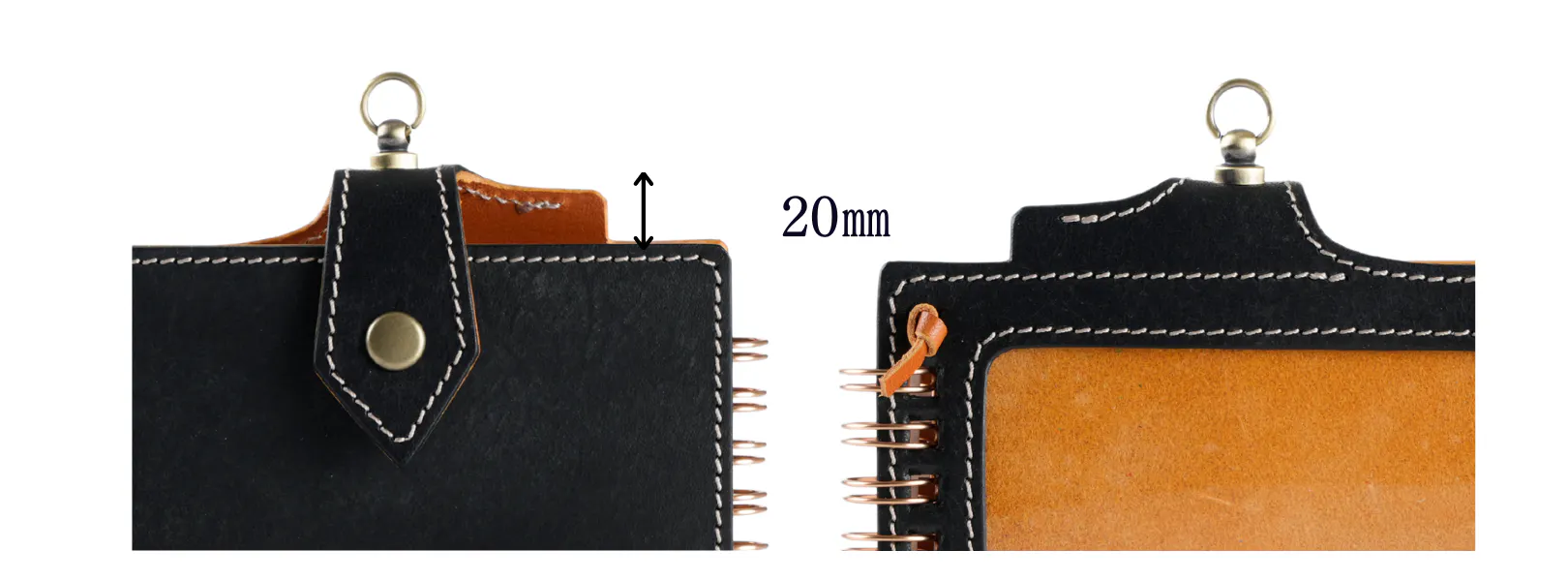 内側のポケットを少し大きめの設計にしました。2つのポケット合わせて名刺が約20枚入ります。