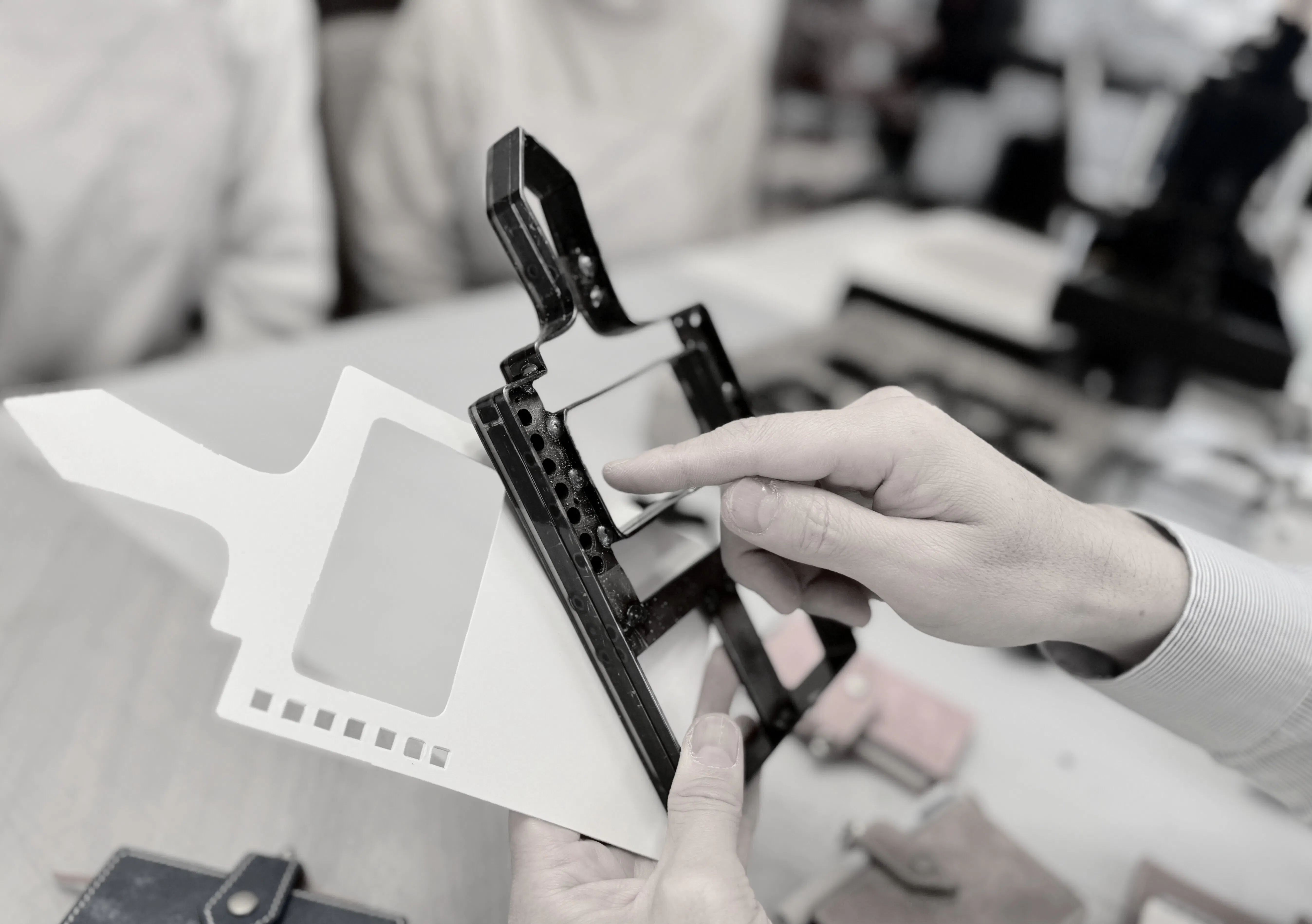 ネックストラップは、当初、既製品を使ってもらおうと考えていましたが、どうしても理想の使いやすさを持つネックストラップが作りたくて、自社開発致しました。