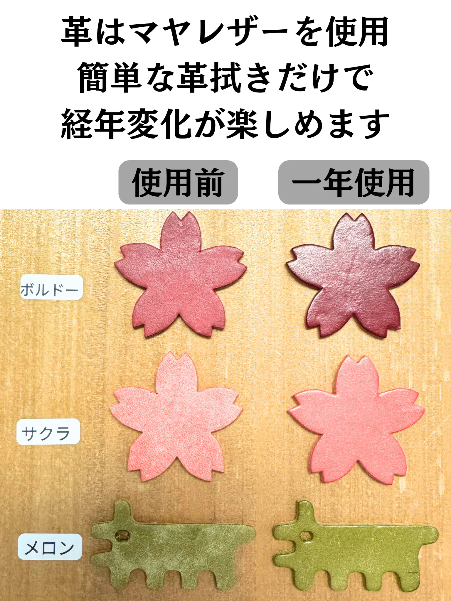 使い込むほどレザーの色艶が増していきます。