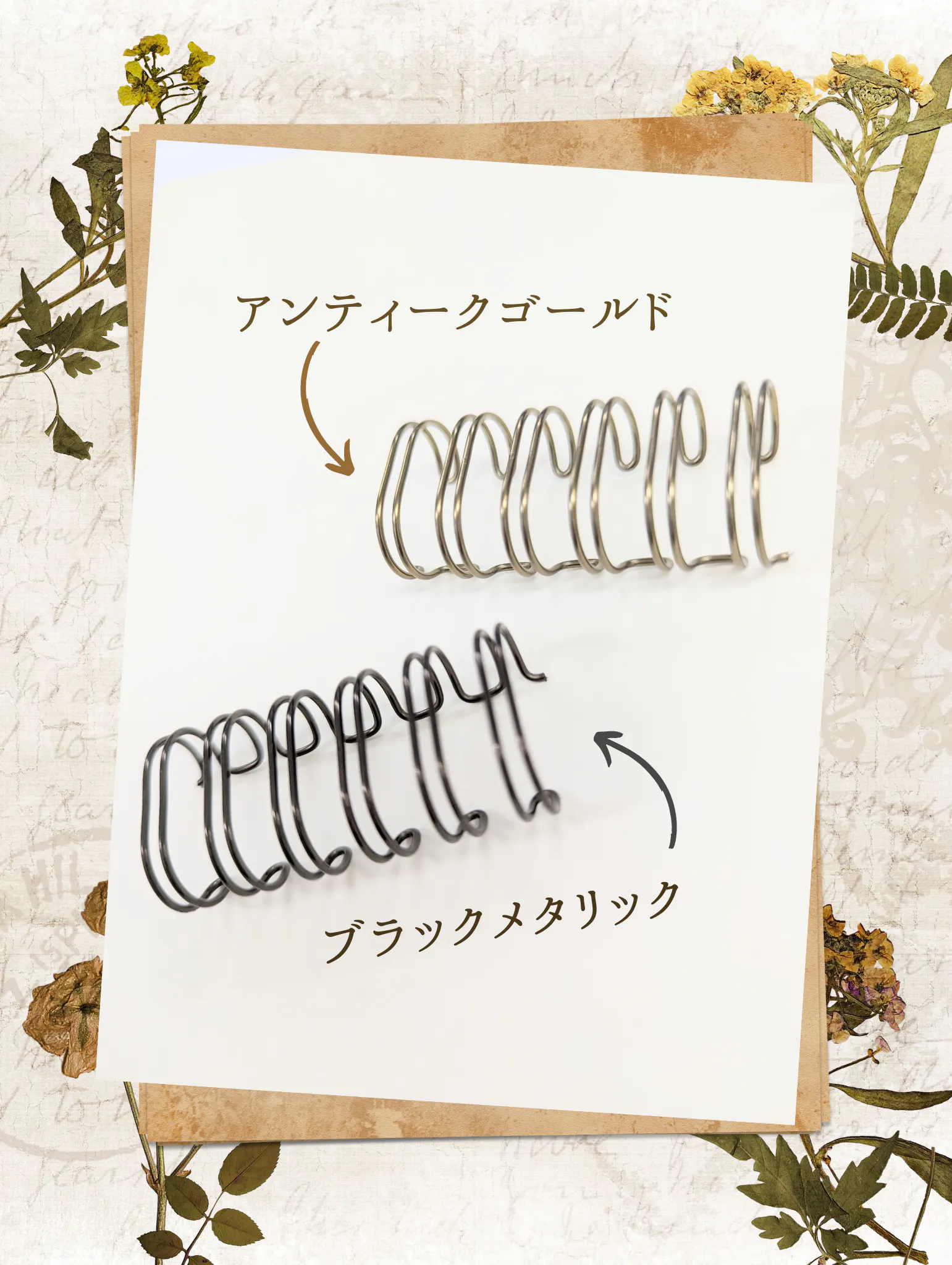 アンティークゴールドは深みのある絶妙なブラウンゴールド、ブラックメタリックは艶のあるブラックです。