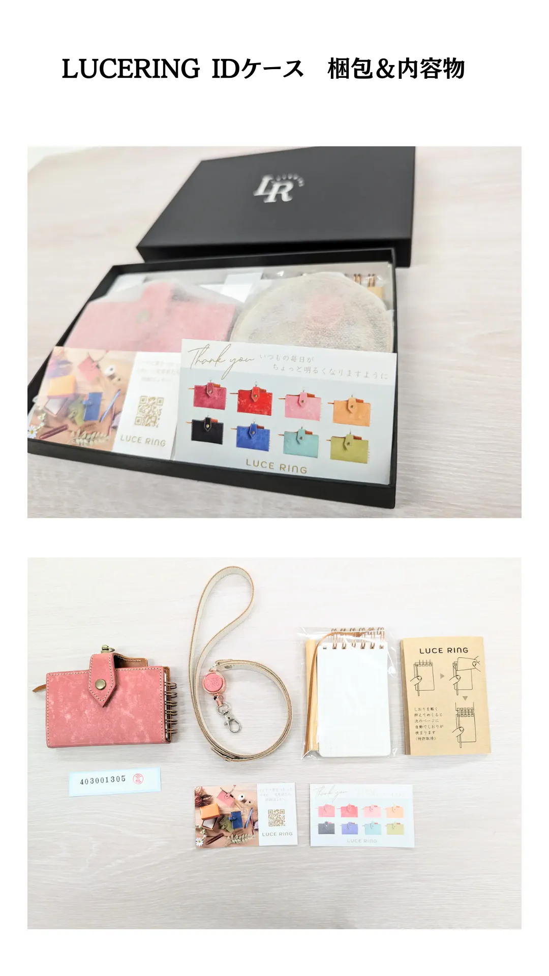 中にはお品物、取り扱い説明用紙、合格証、付属品(リフィル50枚、交換用スティック、交換用リング、予備しおり)、ショップカードが入っています。