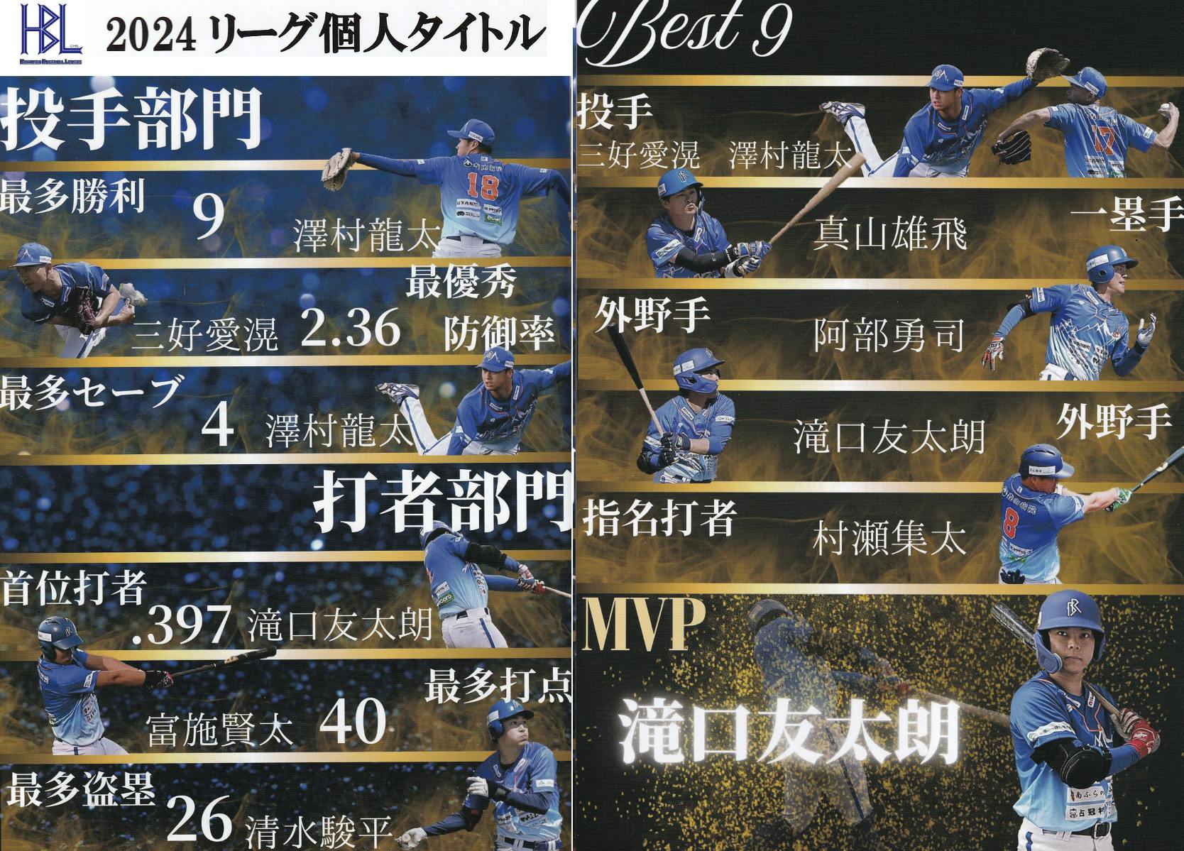 2024/11/08 22:44滝口友太朗です。HBL 2024年シーズンが終了しました。スポンサーの皆さんをはじめ支えてくださった多くの方のおかげで自身最高の結果を残すことができました。シーズンMVPリーグベストナイン打率1位 397出塁率1位 500OPS1位 1000チームも念願のリーグ初優勝でこれ以上の幸せはありません。最高のコーチとチームメイト、球団役員には本当に感謝しています。来シーズンも富良野ブルーリッジに残留しリーグ2連覇に貢献します。引き続き応援していただけたら嬉しいです。 もっと見る