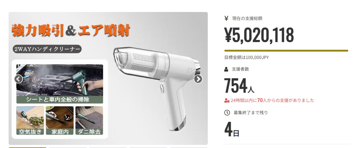 皆様の温かいご応援のおかげで、支援総額が500万円を超えました。弊社スタッフとメーカー一同、心から感謝しております。