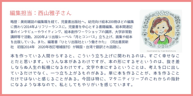 また、私たちはママを応援する人たちにもエールを送りたいと思っています。頑張るママを応援する周囲の方が、この本をプレゼントすることでその気持ちを伝えることができる、そんな存在になれば嬉しいです。