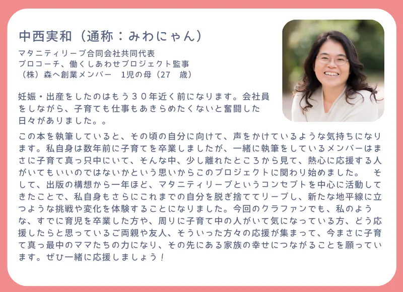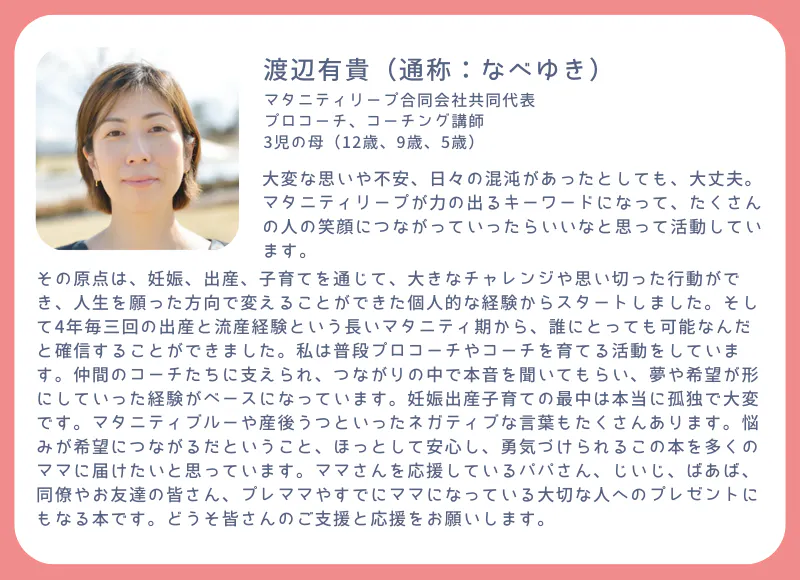 ・この本で完結ではなく、実際に本中のワークを活用したワークショップも開催していく予定です。皆さんのマタニティリープのプロセスを本の外からもサポートしていきます。