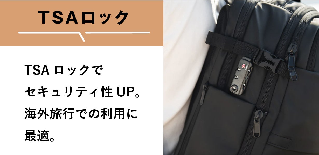 A: クッション性の高いショルダーハーネス、高い防水性、スーツケース用のトロリーベルト付き、TSAロック付き、USBポート(type-Cとtype-A)付き、トラベルタイプには計量器付き、などの特徴があります。