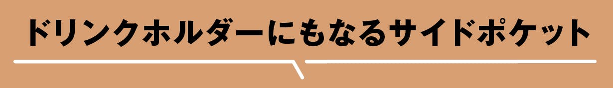 サイズが調節できるサイドポケット。サッと取り出したい小物類から、ジッパーを開ければドリンクボトルまで、様々なものを収納できます。