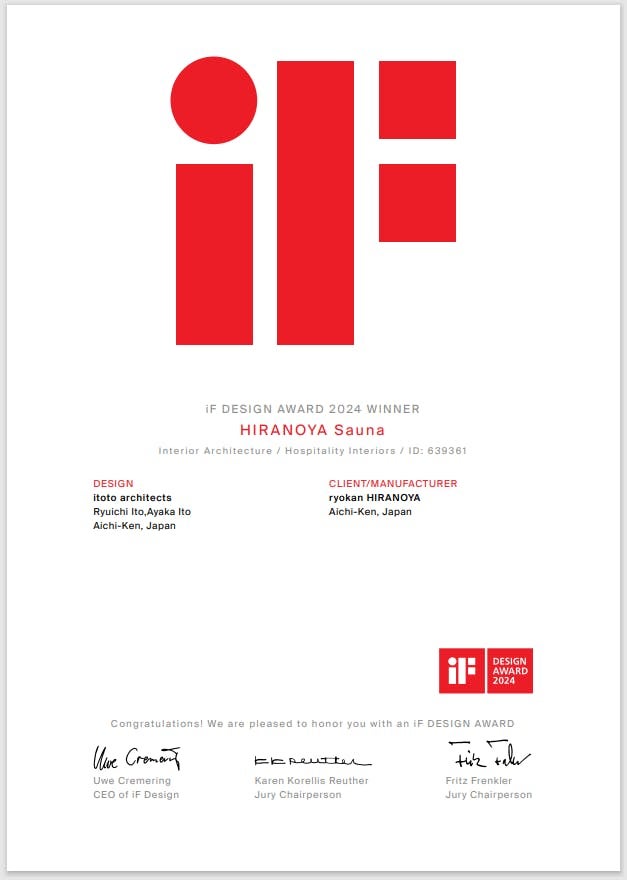 【三谷温泉 平野屋】平野屋サウナが『SKY DESIGN AWARDS 2024』にてGOLD(最優秀賞)を受賞しました!